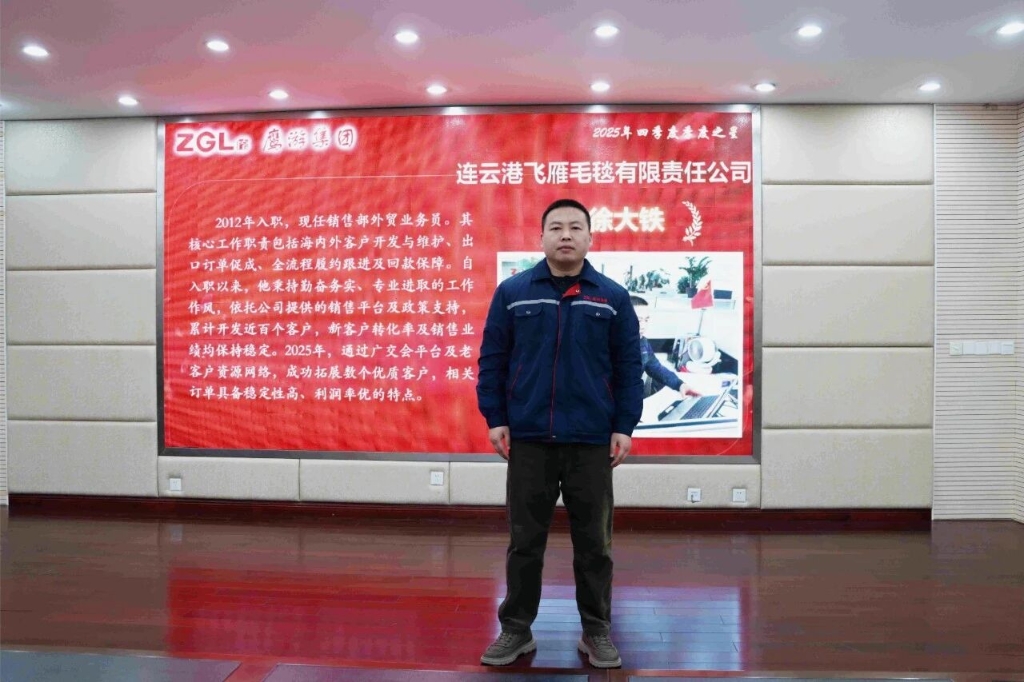 徐大鐵,2012年入職飛雁毛毯公司,現(xiàn)任銷售部外貿(mào)業(yè)務(wù)員,負(fù)責(zé)海內(nèi)外客戶開發(fā)維護(hù)、出口訂單促成、全流程履約跟進(jìn)及回款保障。入職以來,他秉持勤奮務(wù)實(shí)、專業(yè)進(jìn)取的作風(fēng),依托公司平臺與政策支持,累計開發(fā)近百個客戶,新客戶轉(zhuǎn)化率與銷售業(yè)績穩(wěn)居高位。2025年,他借力廣交會平臺及老客戶資源網(wǎng)絡(luò),成功拓展多個優(yōu)質(zhì)客戶,相關(guān)訂單穩(wěn)定性高、利潤率優(yōu),為公司2026年持續(xù)生產(chǎn)提供有力訂單支撐。