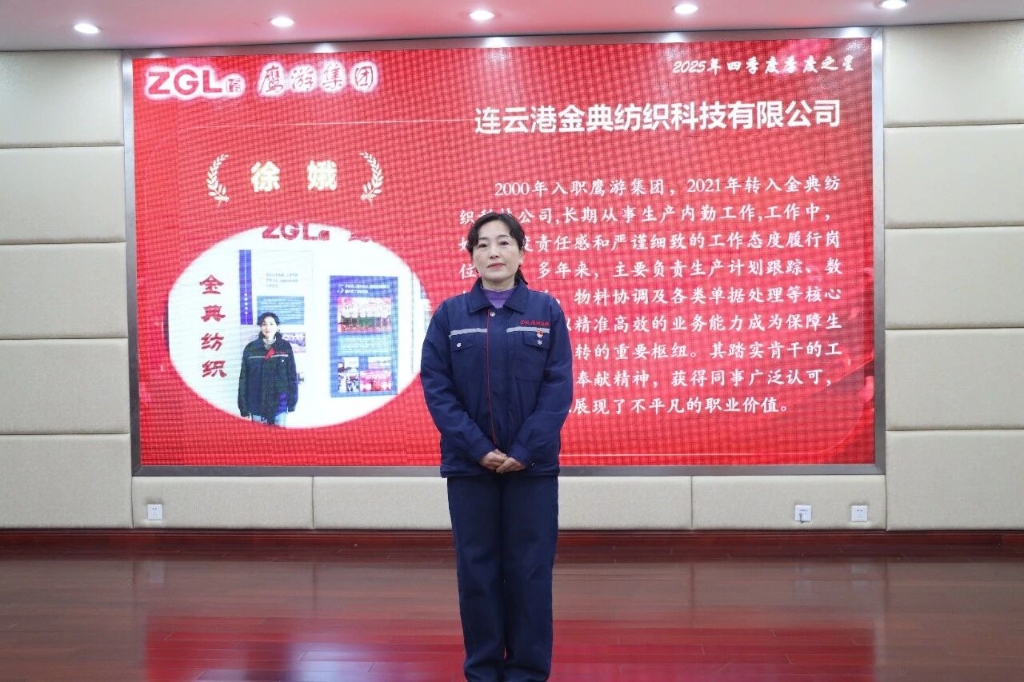 徐娥,中共黨員,2000年入職鷹游集團(tuán),2021年轉(zhuǎn)入金典紡織科技公司,長期深耕生產(chǎn)內(nèi)勤崗位。她秉持高度責(zé)任感與嚴(yán)謹(jǐn)細(xì)致的工作態(tài)度,負(fù)責(zé)生產(chǎn)計劃跟蹤、數(shù)據(jù)統(tǒng)計匯總、物料協(xié)調(diào)及單據(jù)處理等核心事務(wù),憑借對生產(chǎn)全流程的熟悉和出色的溝通協(xié)調(diào)能力,精準(zhǔn)對接各部門需求,保障信息流與物流暢通,成為生產(chǎn)一線高效運(yùn)轉(zhuǎn)的堅(jiān)實(shí)后盾,其踏實(shí)肯干、敬業(yè)奉獻(xiàn)的作風(fēng)贏得同事廣泛認(rèn)可。